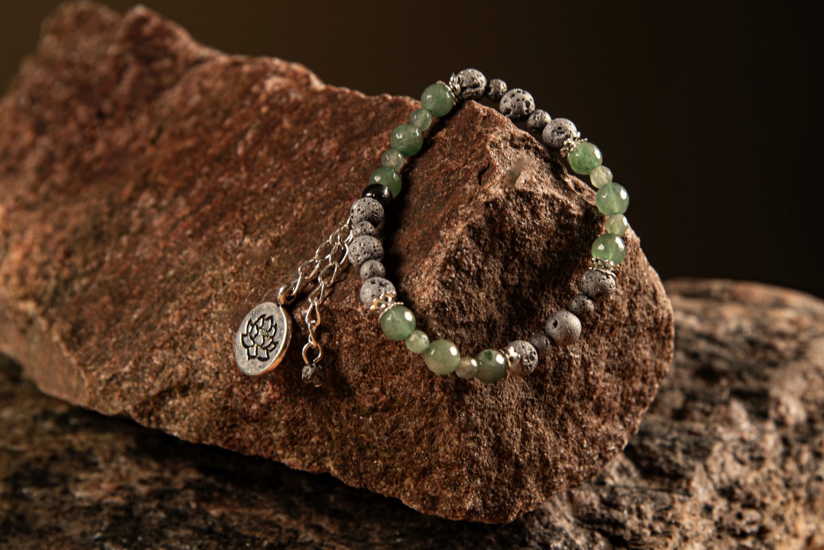 Bransoletka aromaterapeutyczna z zielony Awenturynu i Lawy wulkanicznej